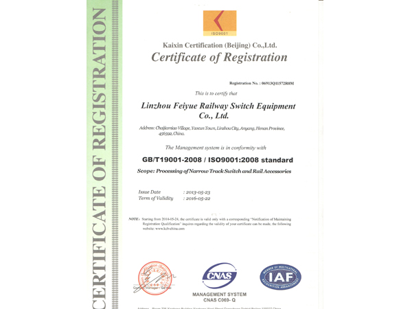 林州市飛躍鐵路道岔器材有限公司位于舉世聞名的世界八大奇跡之一“人工天河”紅旗渠畔,晉、冀、豫三省交界處,交通、通訊便捷。 公司擁有職工和管理人員120多人,高工5名,技術(shù)人員23人。擁有先進的鑄造機加工設(shè)備和完整的質(zhì)量檢測體系,使我公司連續(xù)數(shù)年被評為“重合同守信用”和“重量管理”先進單位。公司生產(chǎn)的主要產(chǎn)品有:輕重軌道岔及各種工具。按種類區(qū)分有:單開道岔、對稱道岔、三開道岔、渡交組合道岔等。特殊要